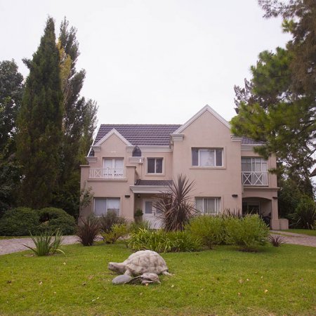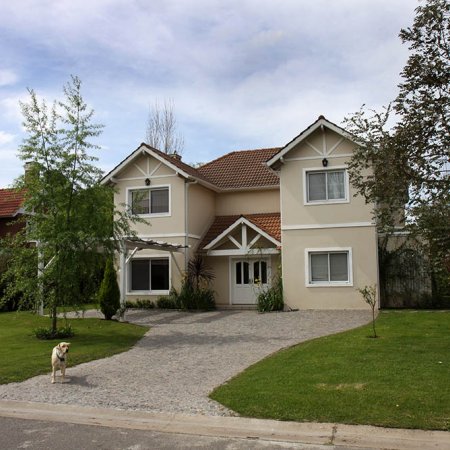 Descripción: En la P.B. se ubican el porche de acceso, el hall, un dormitorio al frente (lado izquierdo), un baño completo con ducha, que se accede tanto desde el interior como del exterior (para las personas que salen de la pileta), living con hogar a leña, comedor principal, comedor diario, cocina, sala de máquinas, lavadero, galería guarda coche en el frente (lateral derecho) y otra galería en el contrafrente (todo el ancho de la casa) con parrilla.