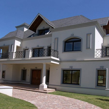 Carpinterías: Todas las aberturas exteriores se construirán en aluminio Línea Módena de Aluar, la puerta de acceso principal en madera dura, para el marco incienso o similar y semidura, cedro o peteribi a elección para las hojas, con tablero macizo y enchapado con moldura en bastidor en las puertas interiores y placares, los interiores de placares también son enchapados y todas las carpinterías estarán terminadas con barnices o esmaltes sintéticos de primera calidad.