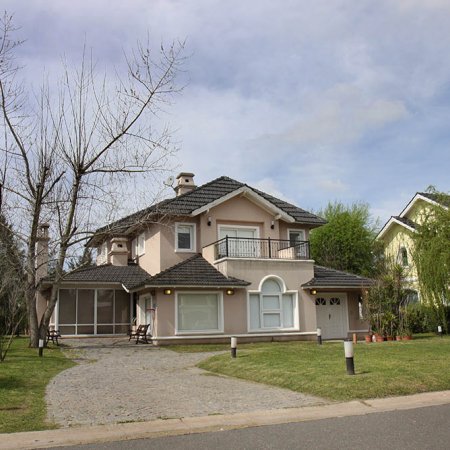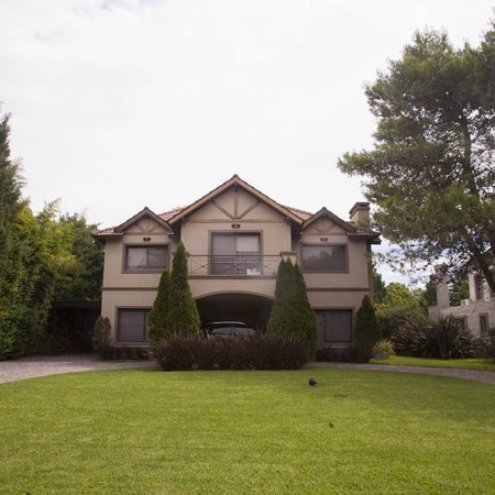 Descripción: En la P.B. se ubican el porche de acceso, el hall, un dormitorio al frente (lado izquierdo), un toilette, living con hogar a leña, comedor principal, comedor diario, cocina, en la galería del lateral se encuentran el lavadero, parrilla y un lugar para guardacoche.A la galería del contrafrente se accede desde el living.